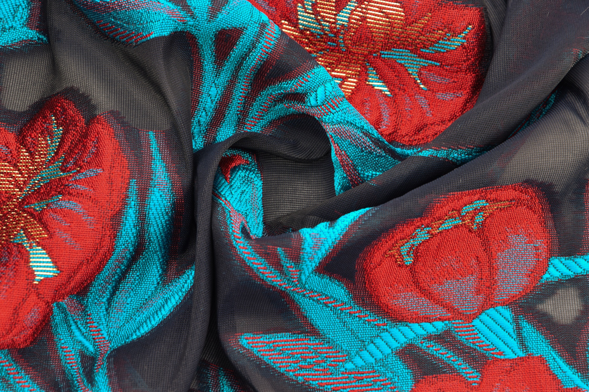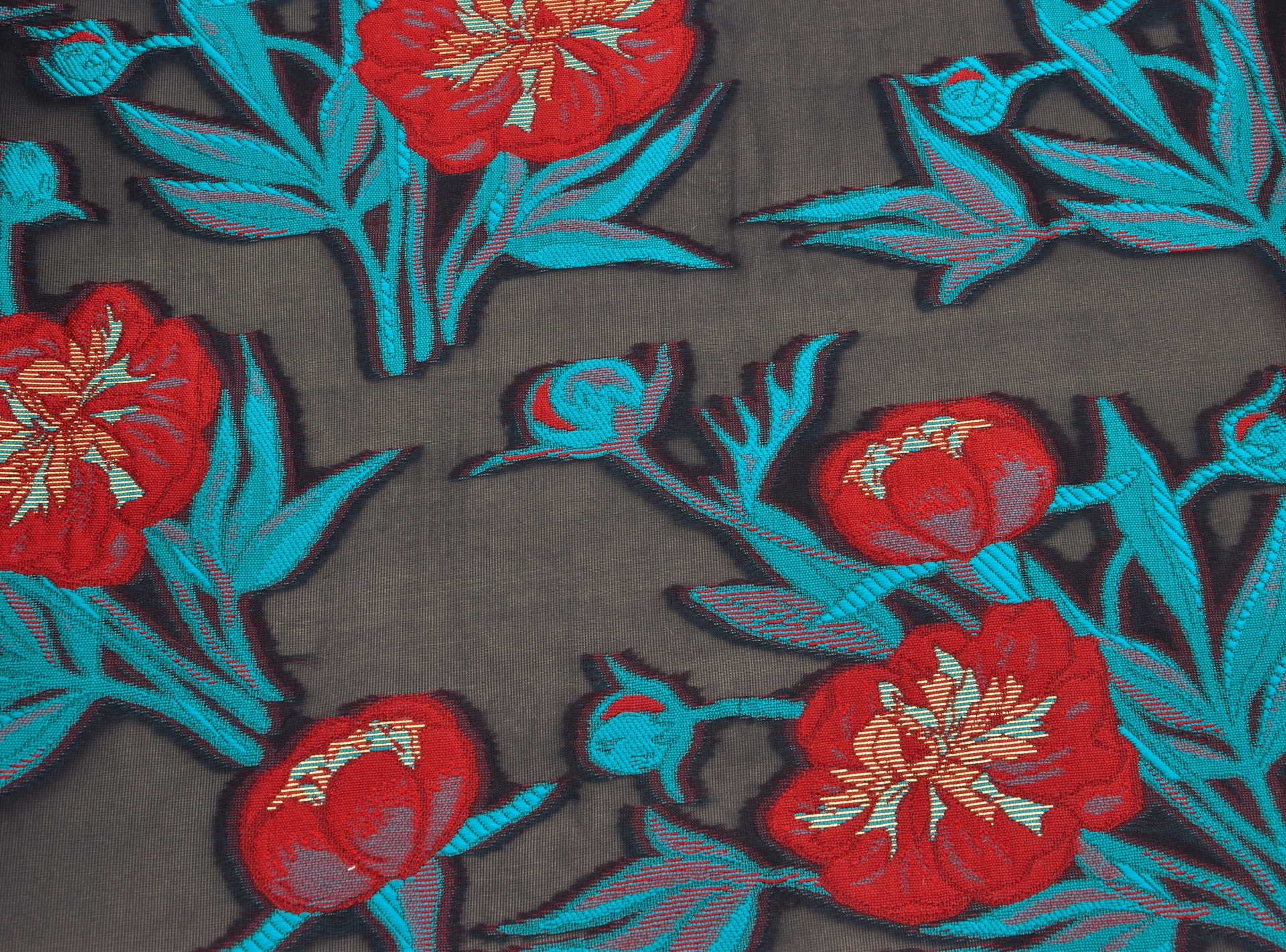 Organza Bestickt Rot / Petrol