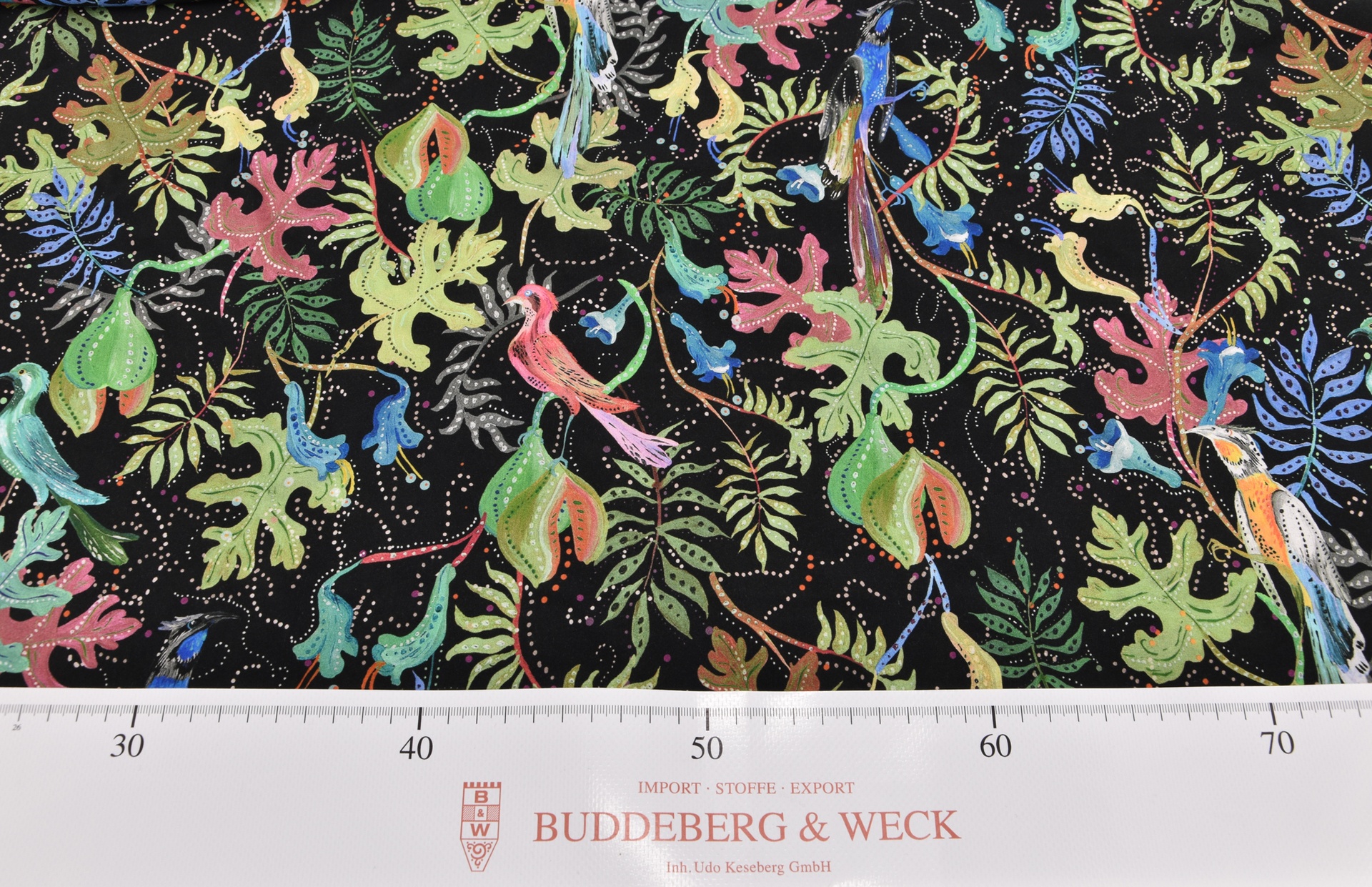 Die leichte Viskosequalität zeichnet sich durch einen schönen Fall und einen weichen Griff aus. Er weist einen angenehmen Tragekomfort auf. Besonders gut lässt sich die bedruckte Viskose als Oberteil oder Kleid verarbeiten.