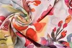 Die leichte Viskosequalität zeichnet sich durch einen schönen Fall und einen weichen Griff aus. Er weist einen angenehmen Tragekomfort auf. Besonders gut lässt sich die bedruckte Viskose als Oberteil oder Kleid verarbeiten.