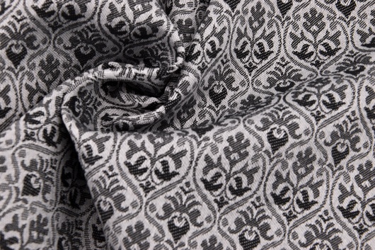 Der gemusterte Baumwollsatin ist stabil und gut zu verarbeiten. Der Stoff ist recht fest und hat dennoch einen schönen Fall. Die Hauptanwendung befindet sich im Trachtenbereich.