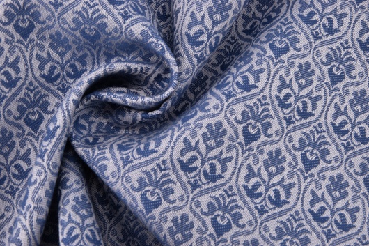 Der gemusterte Baumwollsatin ist stabil und gut zu verarbeiten. Der Stoff ist recht fest und hat dennoch einen schönen Fall. Die Hauptanwendung befindet sich im Trachtenbereich.