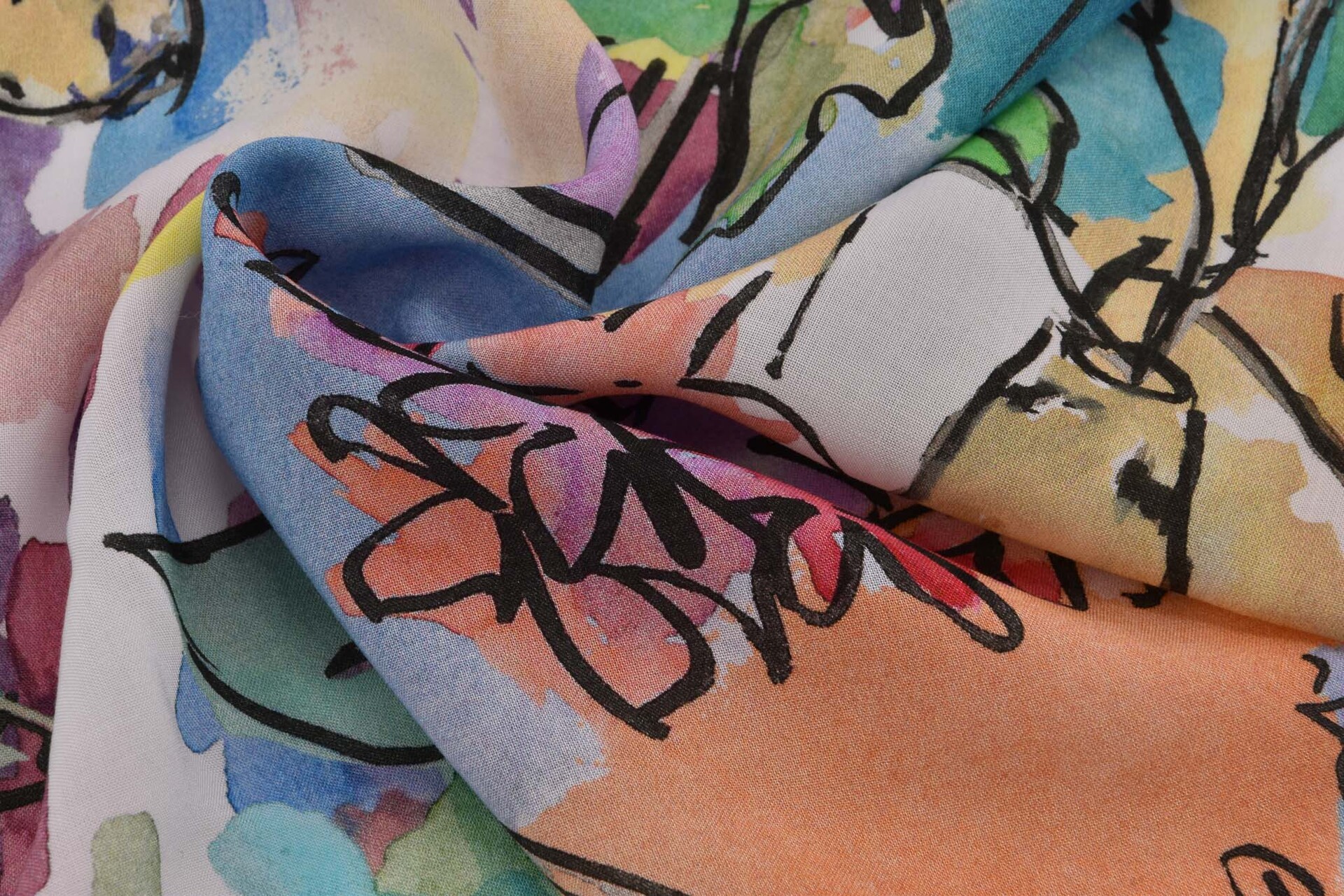 Die leichte Viskosequalität zeichnet sich durch einen schönen Fall und einen weichen Griff aus. Er weist einen angenehmen Tragekomfort auf. Besonders gut lässt sich die bedruckte Viskose als Oberteil oder Kleid verarbeiten.